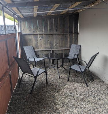 Step outside to the designated outdoor area, ideal for enjoying some fresh air or your morning coffee.