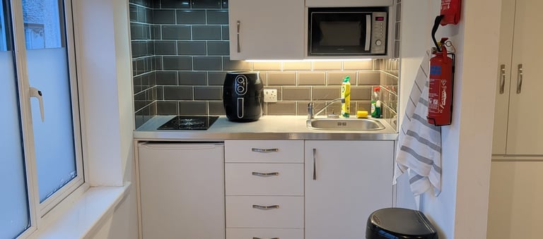 The kitchenette is equipped with all the essentials for preparing home-cooked meals, while high-speed Wi-Fi keeps you connected and entertained.